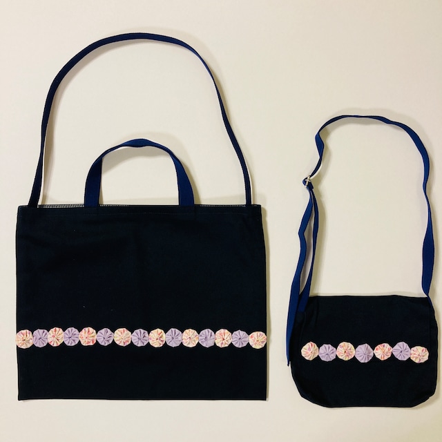 ★セット★手提げ・礼拝バック(小学部) 紫系ヨーヨーキルト