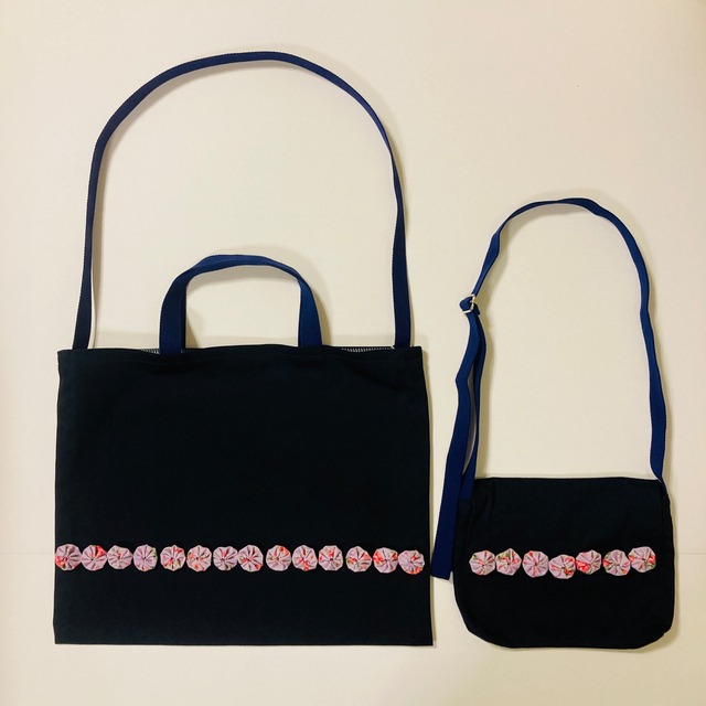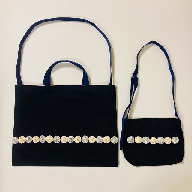 ★セット★手提げ・礼拝バック(小学部) 紺と白チェックヨーヨーキルト:内布柄はお任せ_20251220