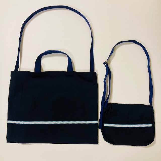 ★セット★手提げ・礼拝バック(小学部) 紺と水色ストライプテープ:内布柄はお任せ_20251220