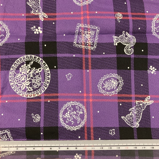 多目的袋(大:23cm×30cm) 紫のタータンチェックにレース柄