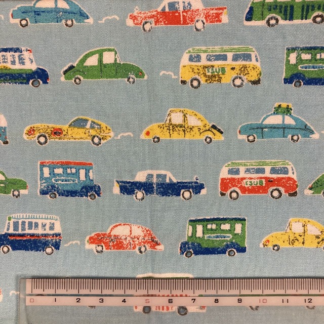 多目的袋(大:23cm×30cm) 水色並んだ車