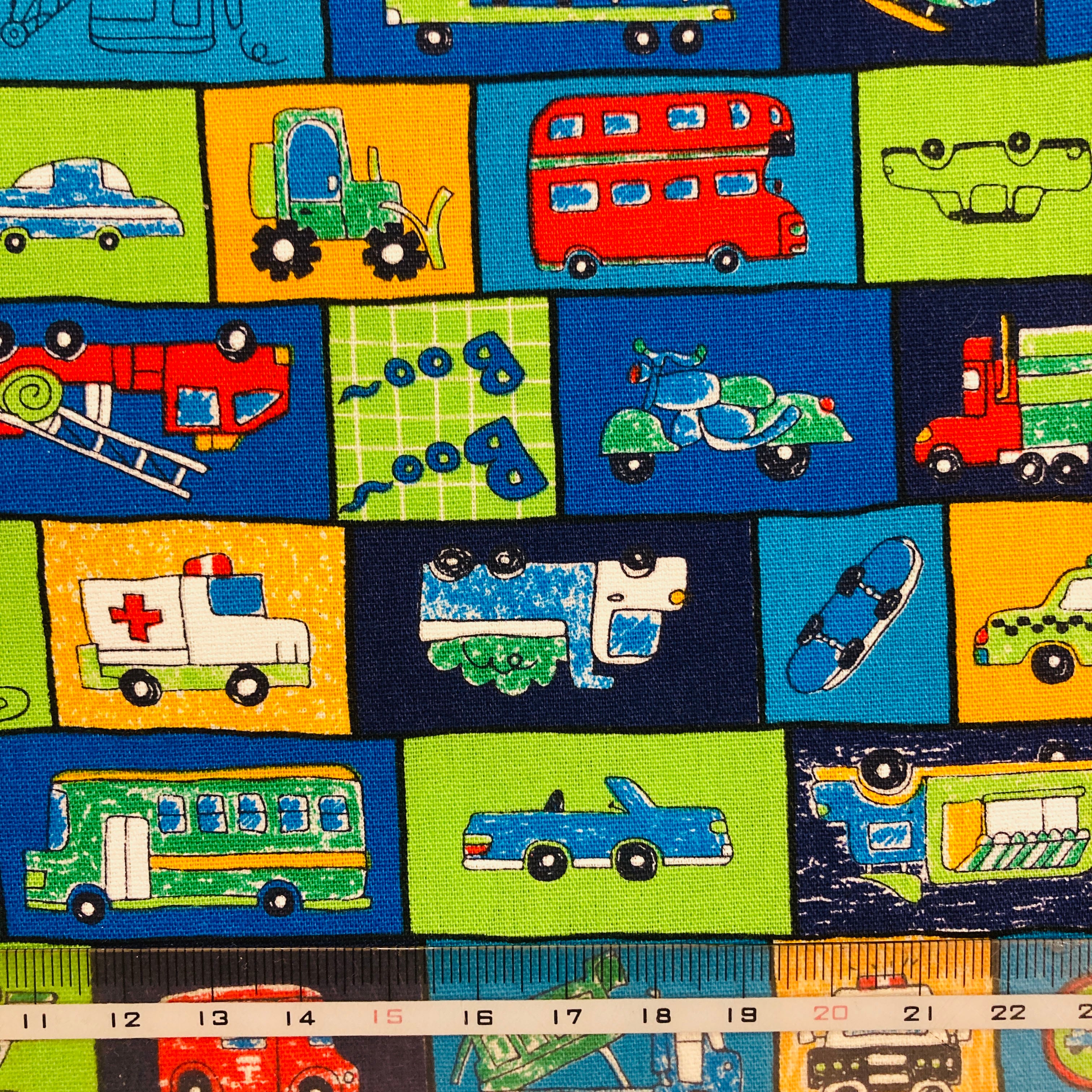 ふくろ3点セット 乗り物大集合 紺と黄緑のスクエア_251029