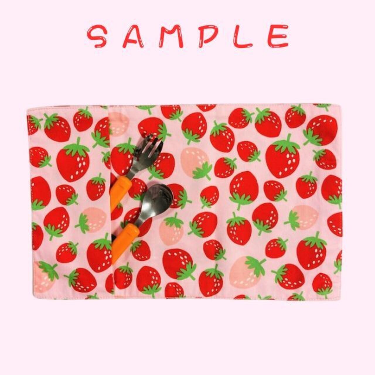 ポケットランチョンマット(32㎝×20cm) イチゴと白いどっと 落ち着いた薄紫_251029