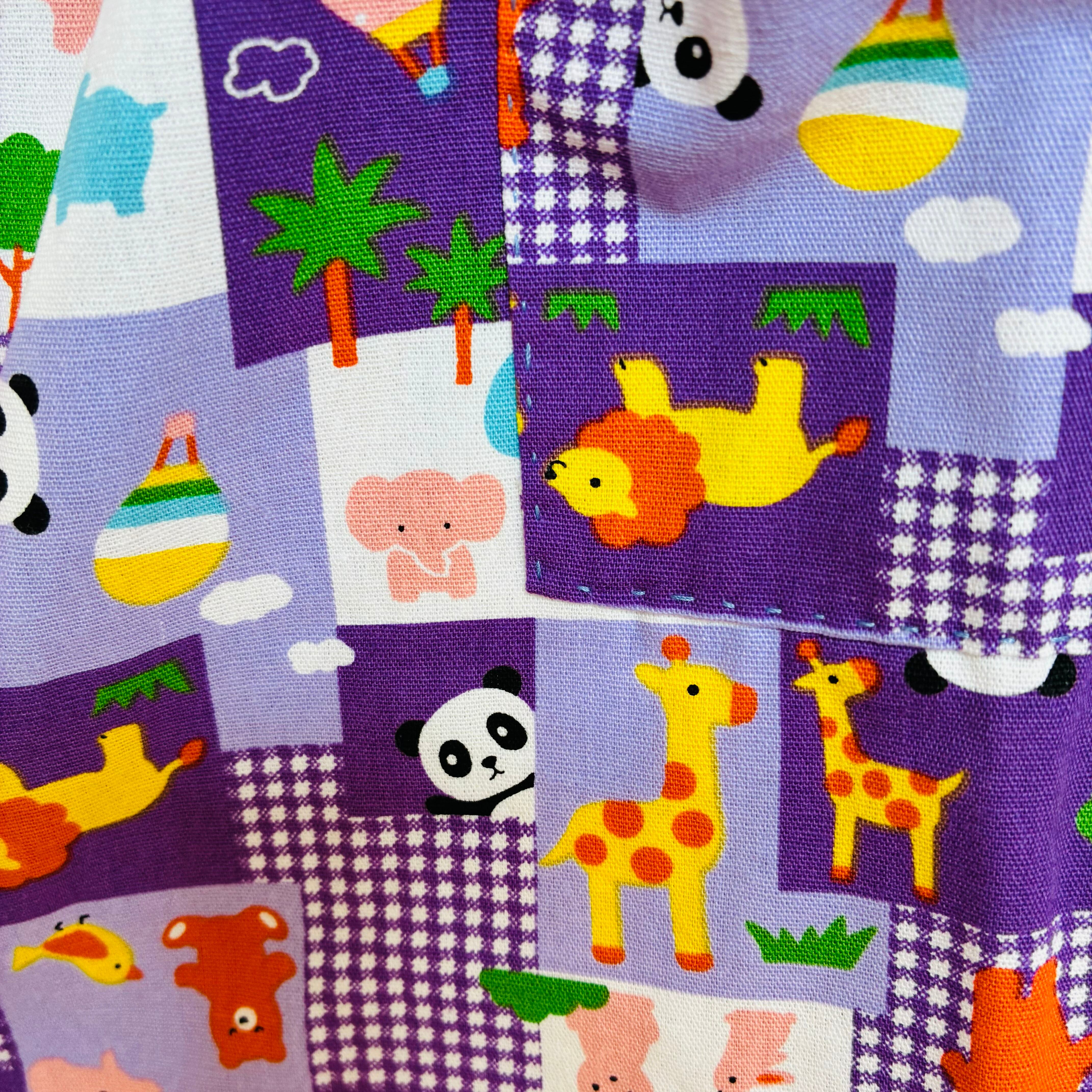 長袖スモック110(身丈43cm) パッチワーク風アニマル 紫系_251029