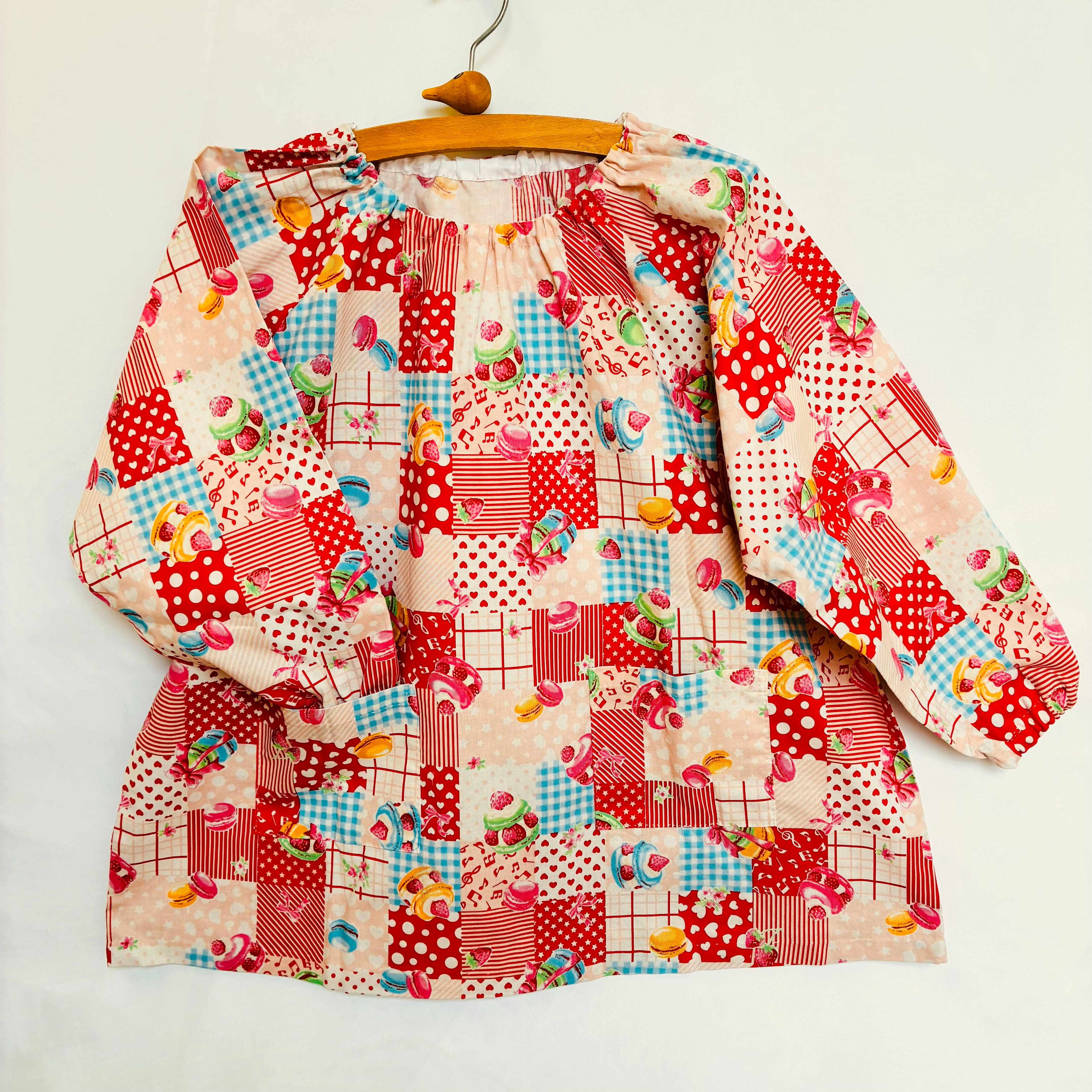 長袖スモック120(身丈49cm) パッチワーク風イチゴスウィーツ_251029