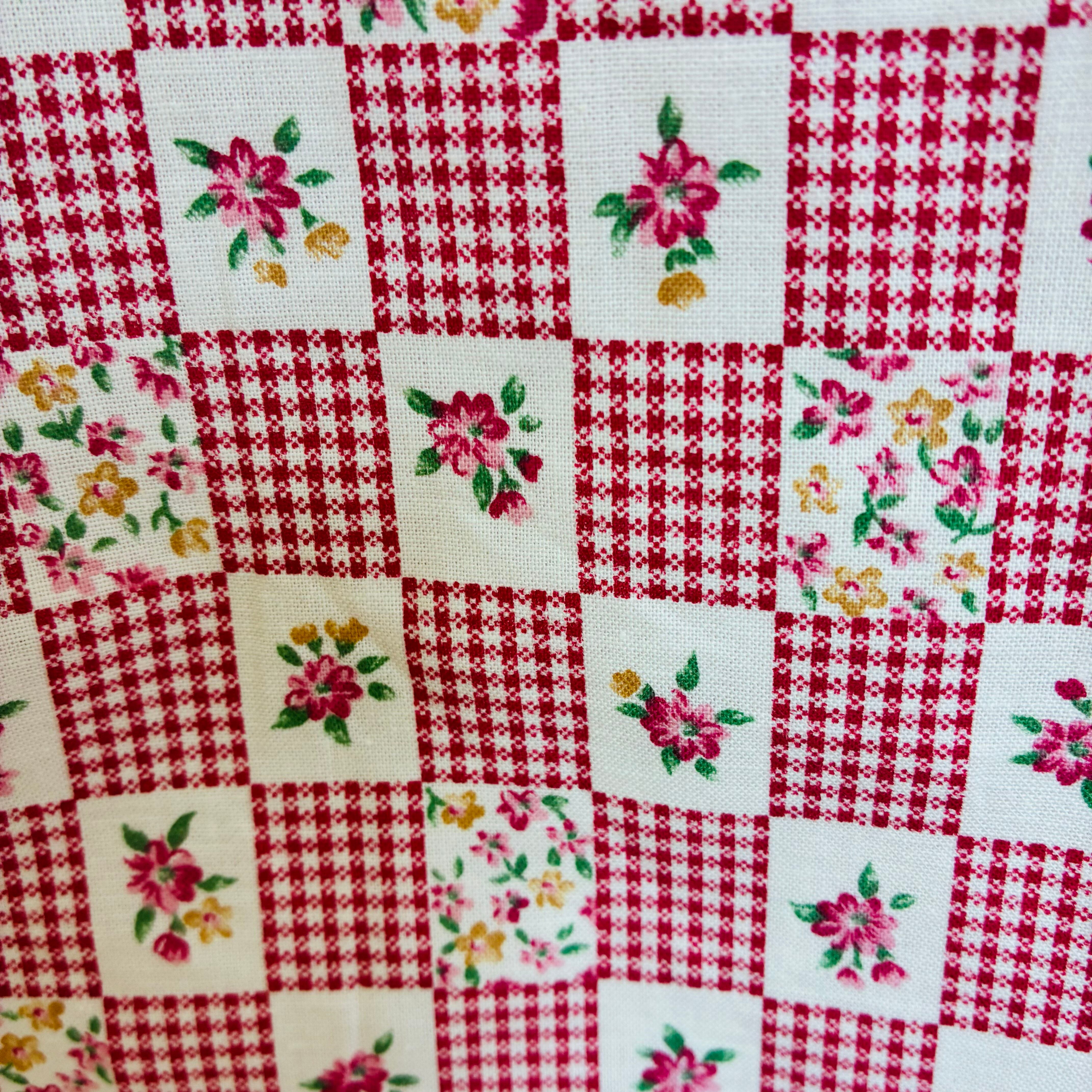 長袖スモック130ロング(身丈69cm) 四角の中のバラとチェック 赤_251029