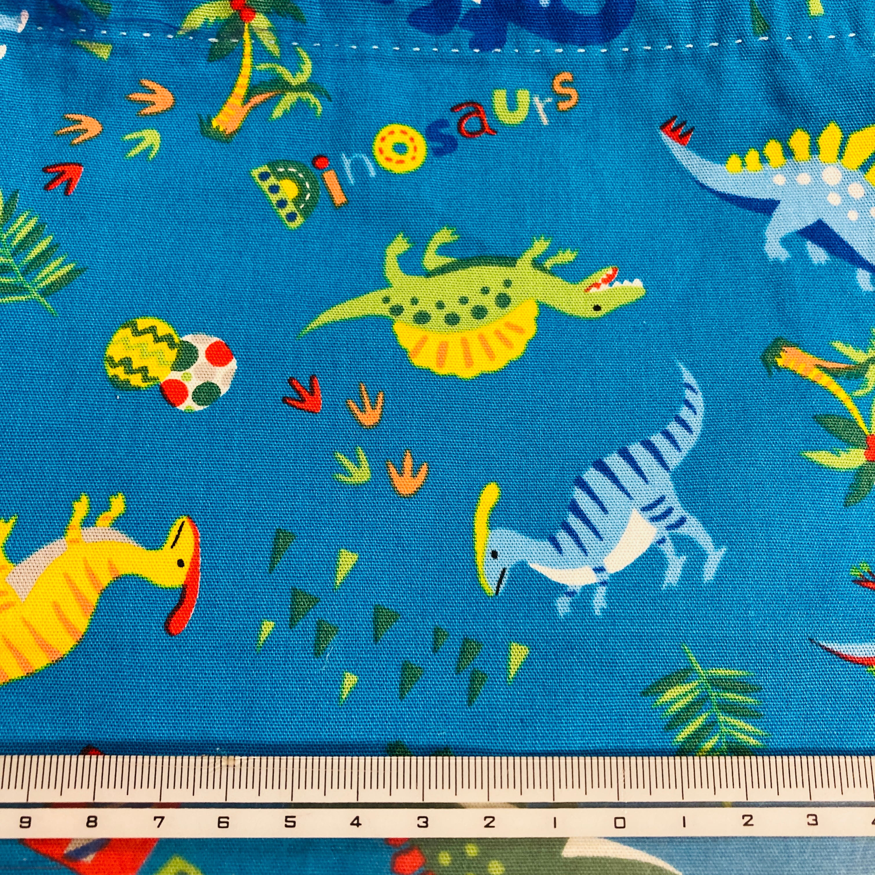 多目的袋(大:23cm×30cm) カラフル恐竜 ターコイズブルー_251030
