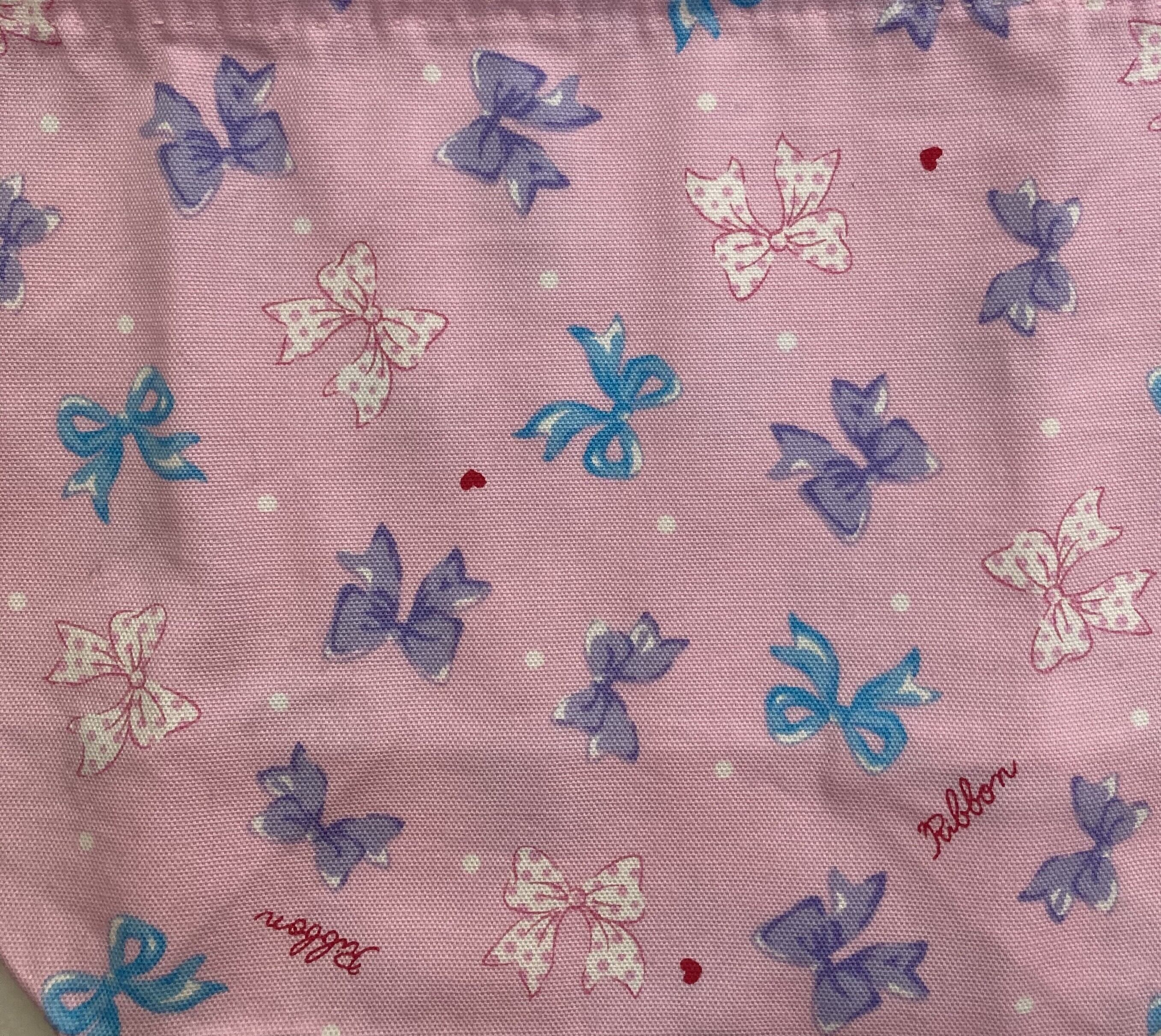 エプロン・三角巾セット マジックテープで着脱簡単! キュートなリボン ピンク地