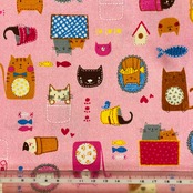 コップ/給食袋・ランチョンマット(小)セット にゃんにゃん猫ちゃん集合 デニム風ピンク