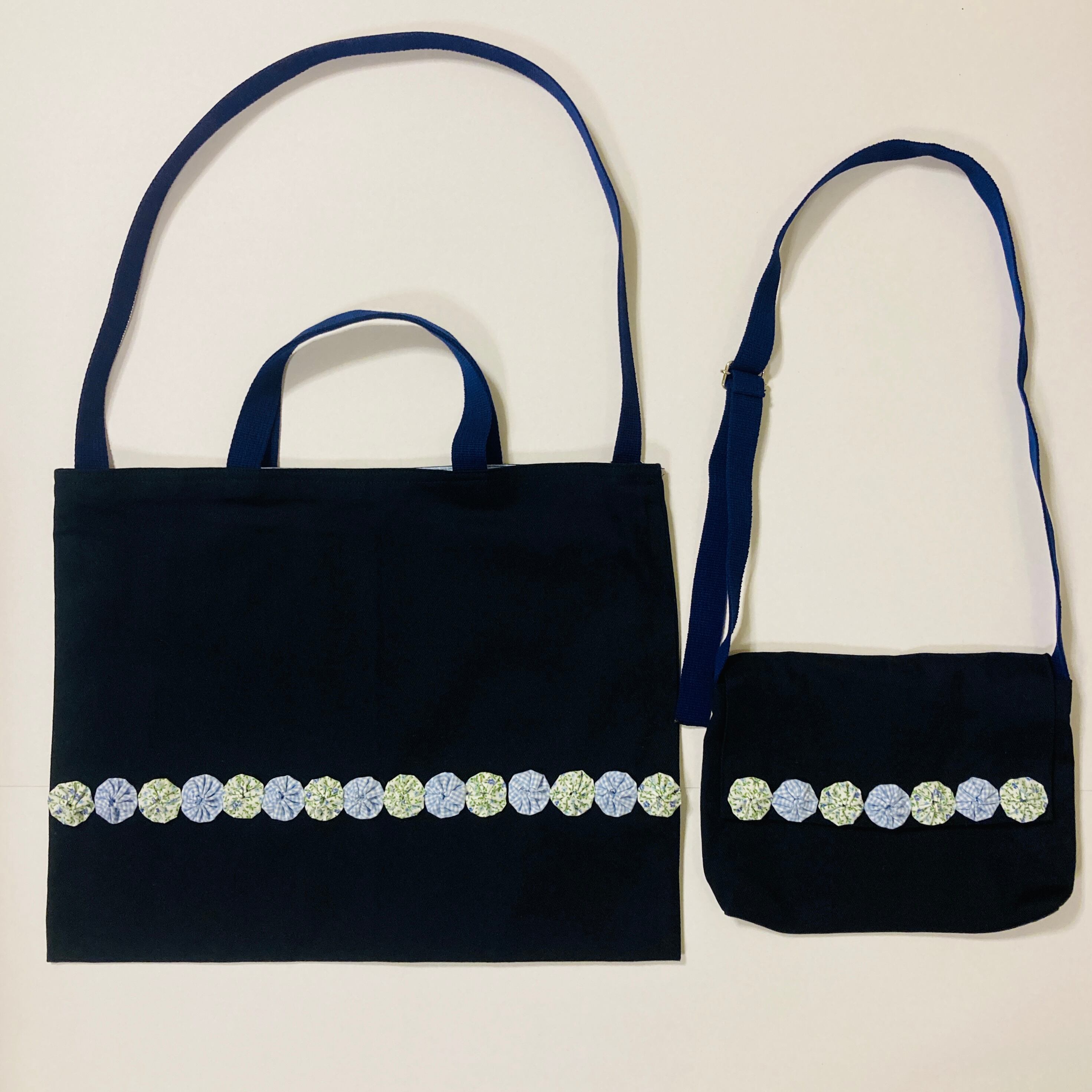 ★セット★手提げ・礼拝バック(小学部) 水色系チェックと小花ヨーヨーキルト:内布柄はお任せ_20251220