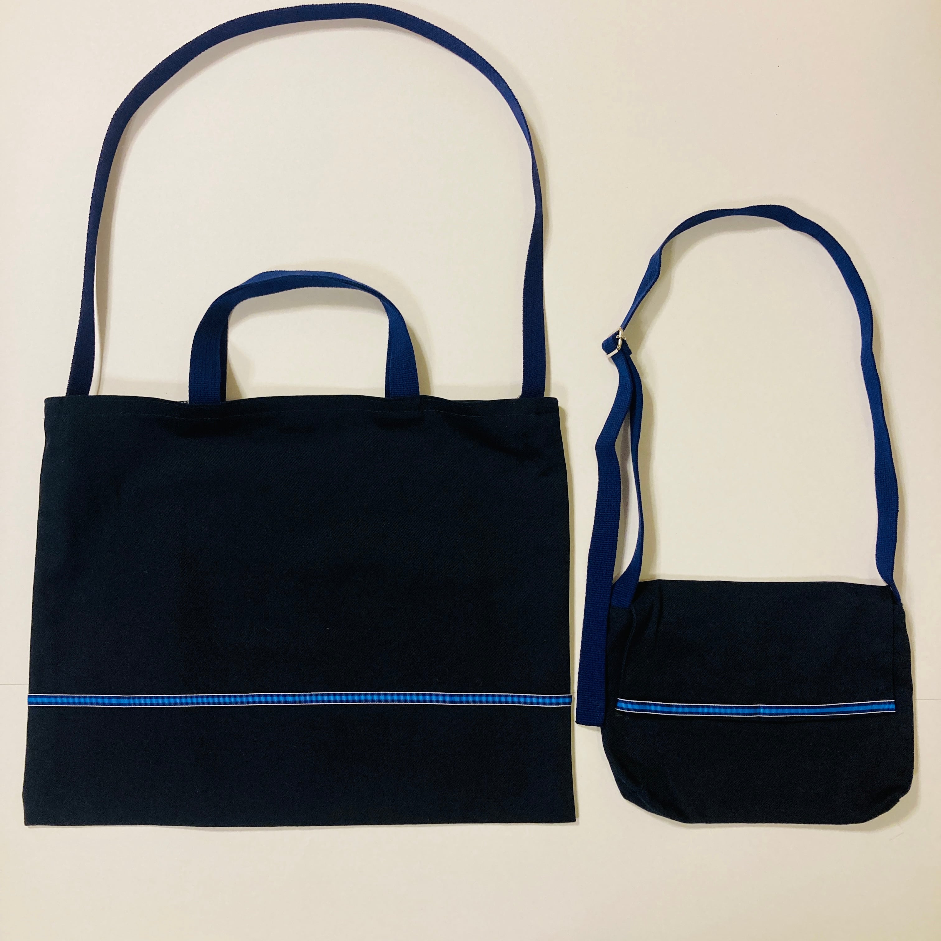 ★セット★手提げ・礼拝バック(小学部) 紺と水色ストライプテープ:内布柄はお任せ_20251220