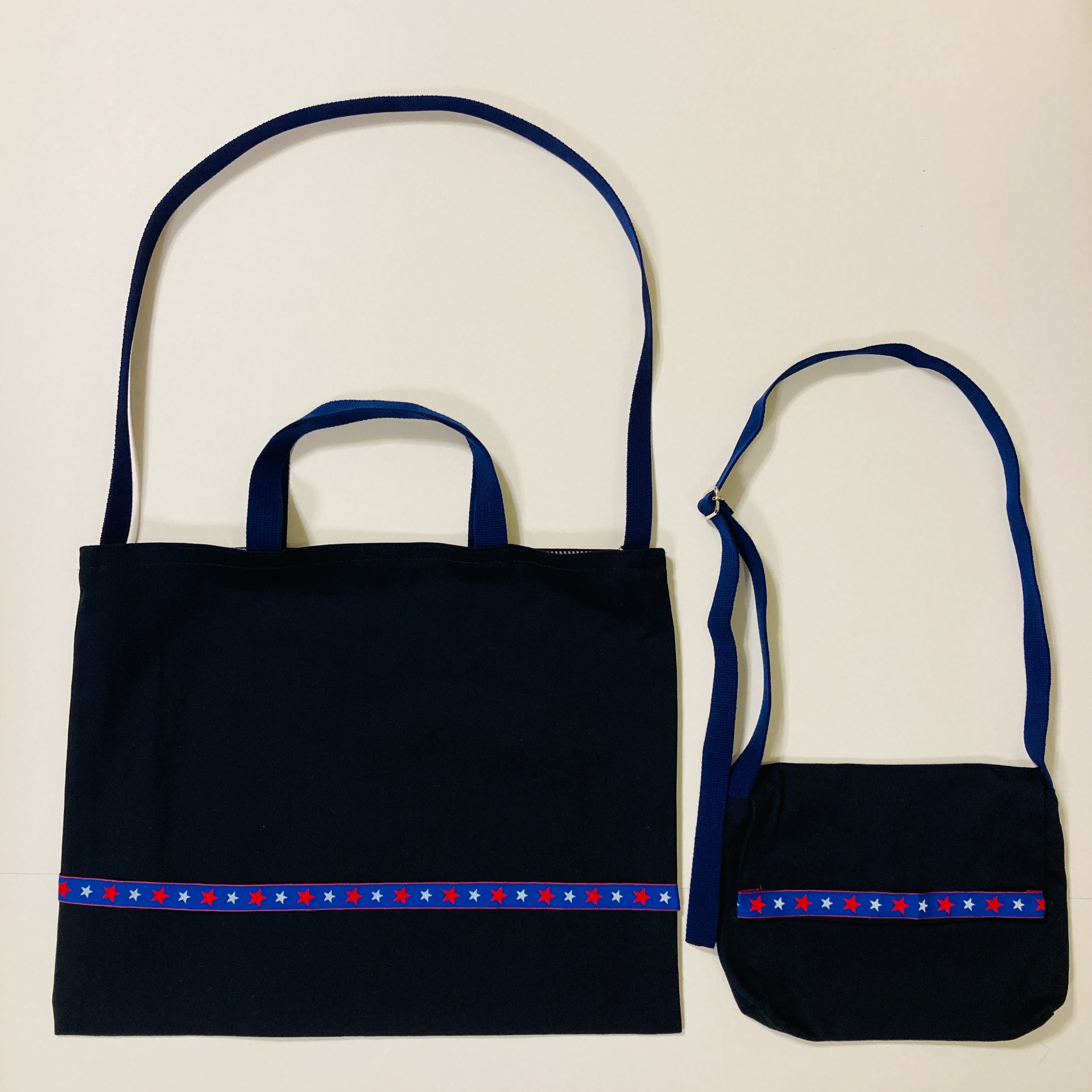 ★セット★手提げ・礼拝バック(小学部)青地に赤と白の星チロリアンテープ:内布柄はお任せ_20251220