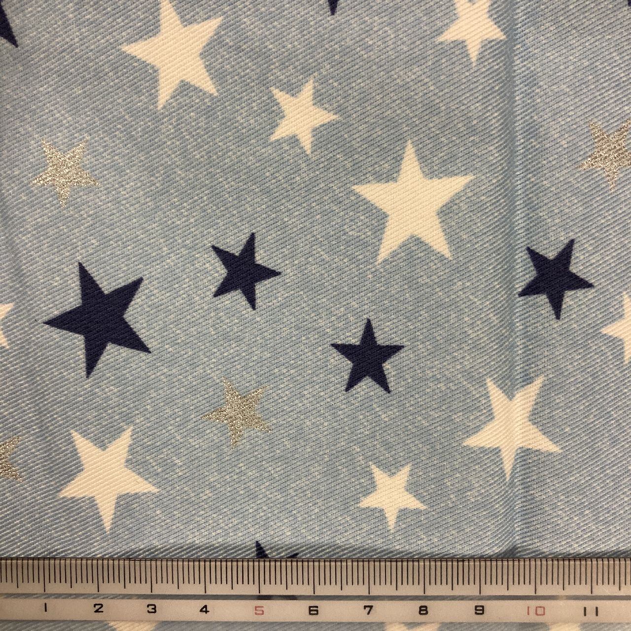 多目的袋(大:23cm×30cm) 水色デニム風星銀ラメ