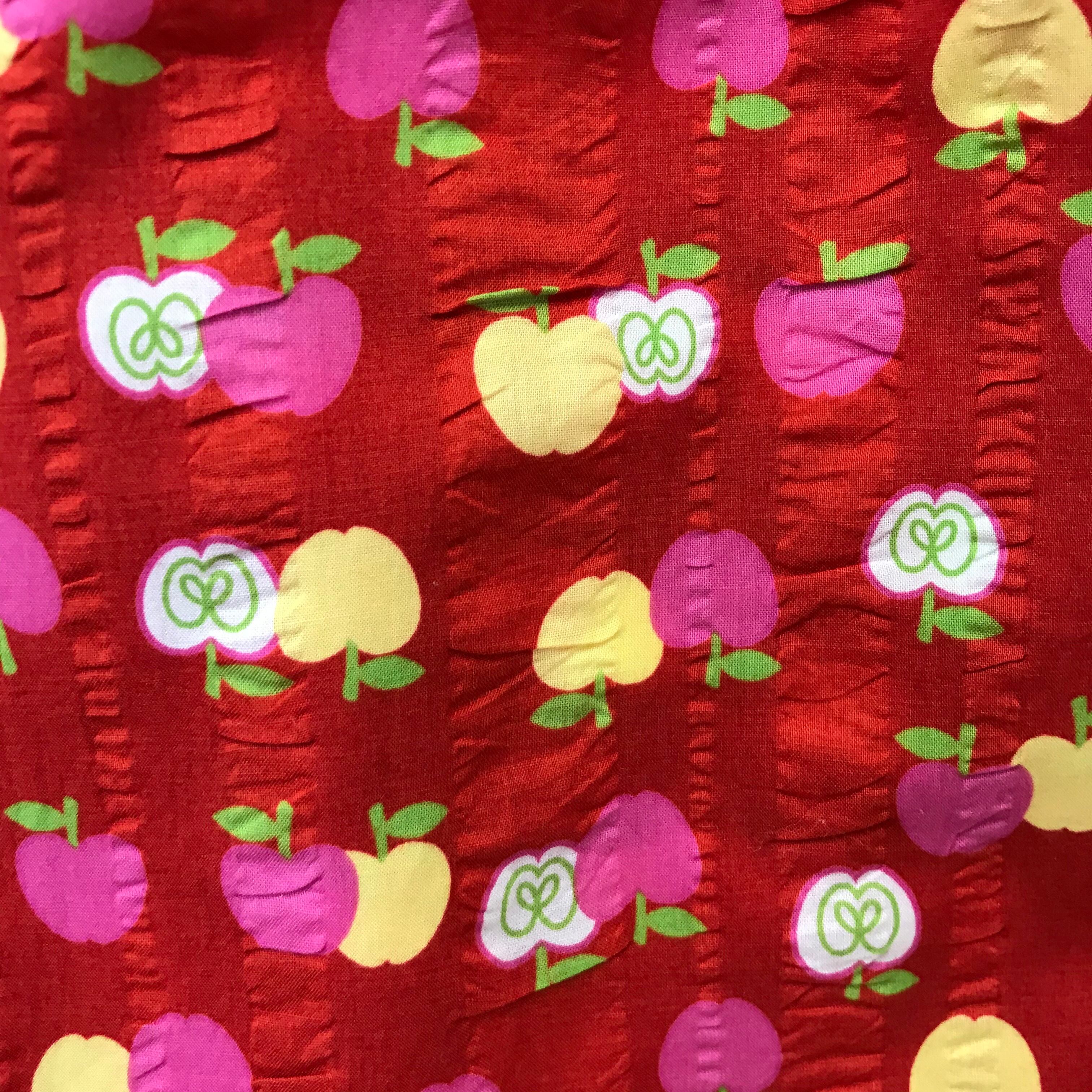 袖なしスモック120cm サッカー地赤地にリンゴ