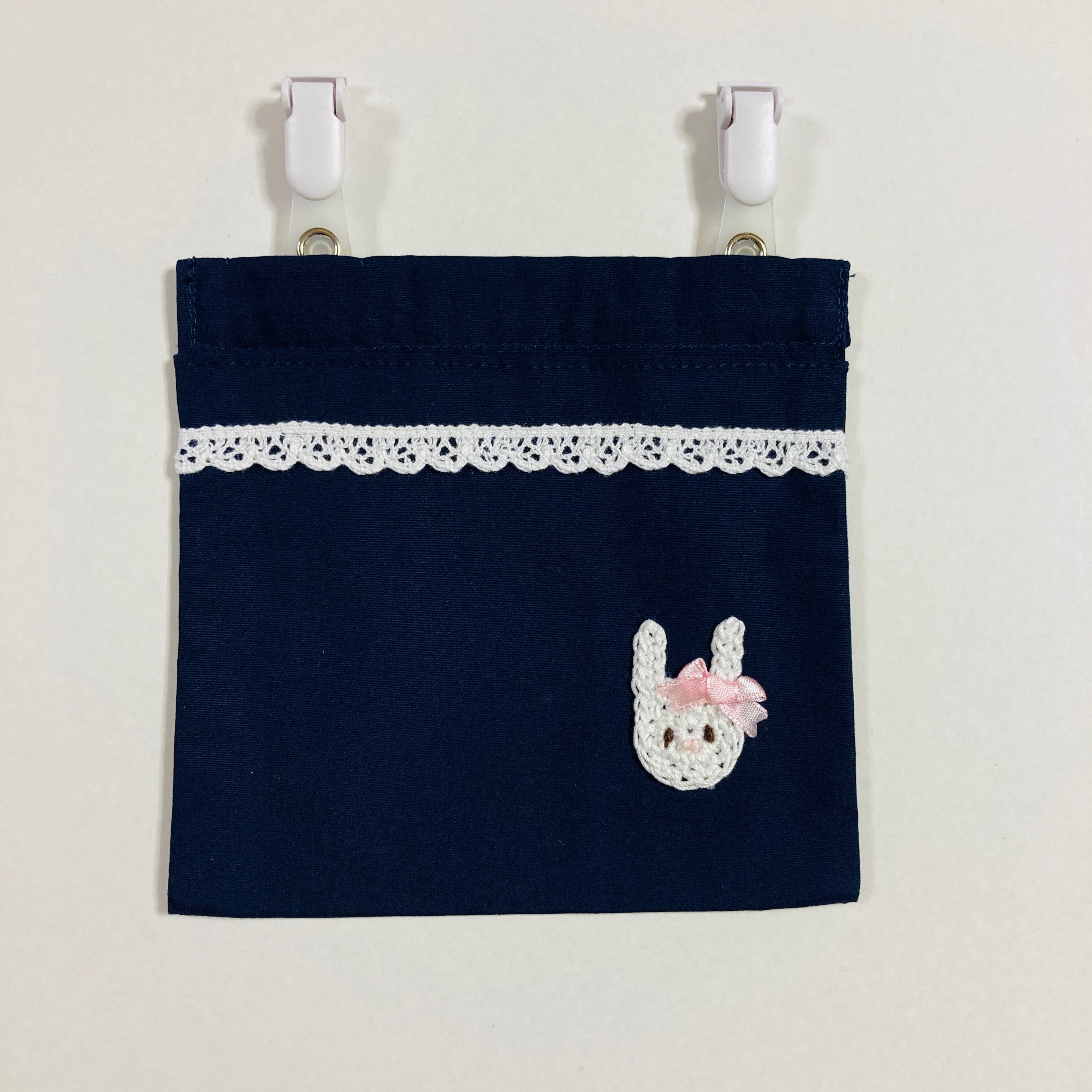 付けポケット(13.5cm×14cm) 手編みの白うさぎ