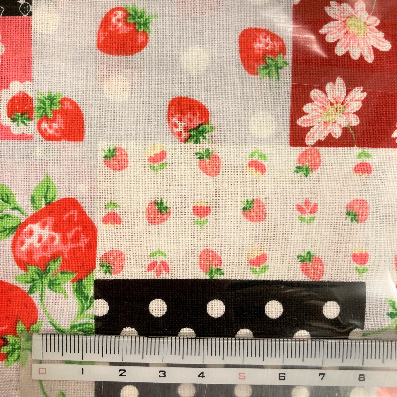 ふくろ3点セット 赤と黒パッチ枠風お花といちご