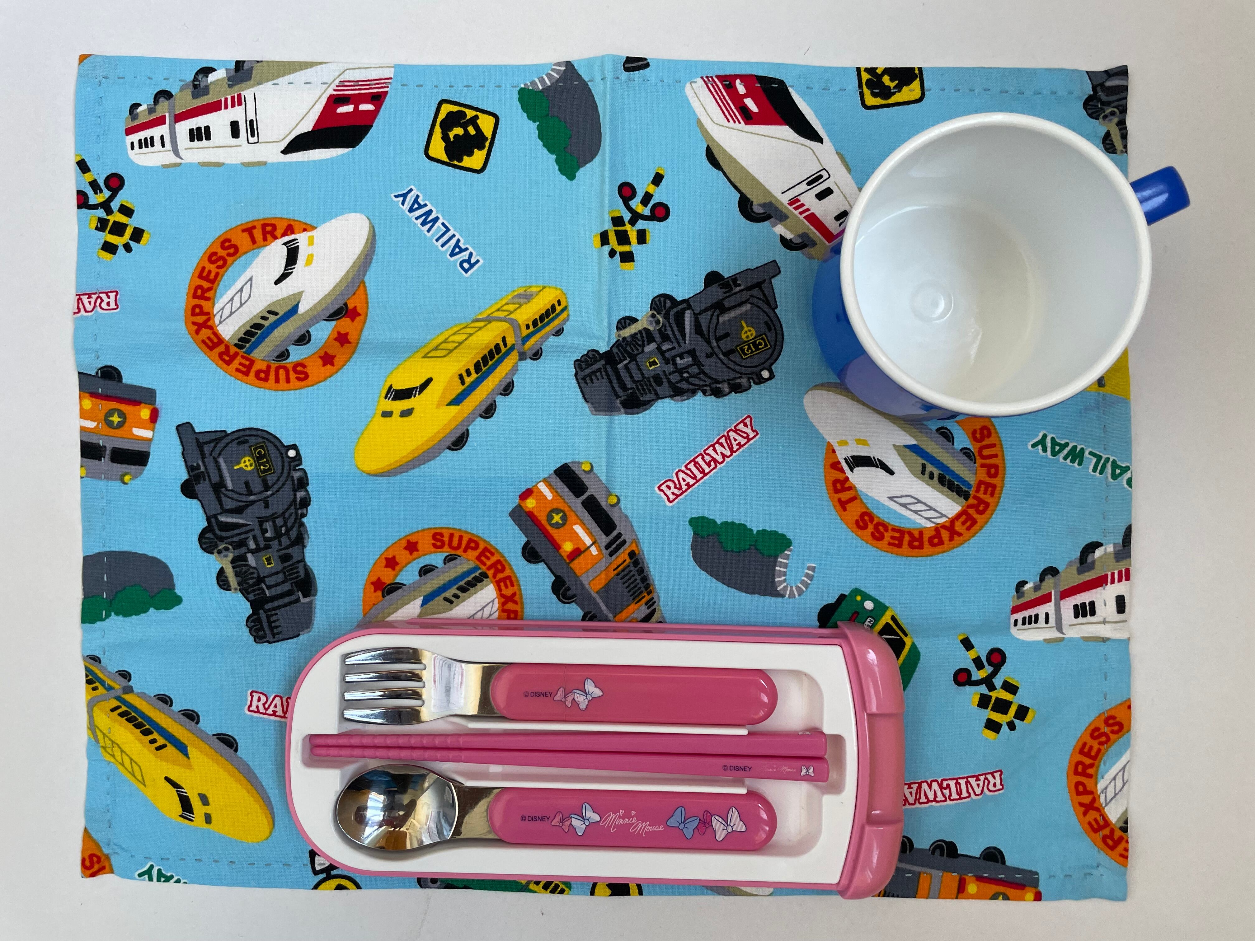 ランチョンマット(小) 飛び出す電車! 水色_231118