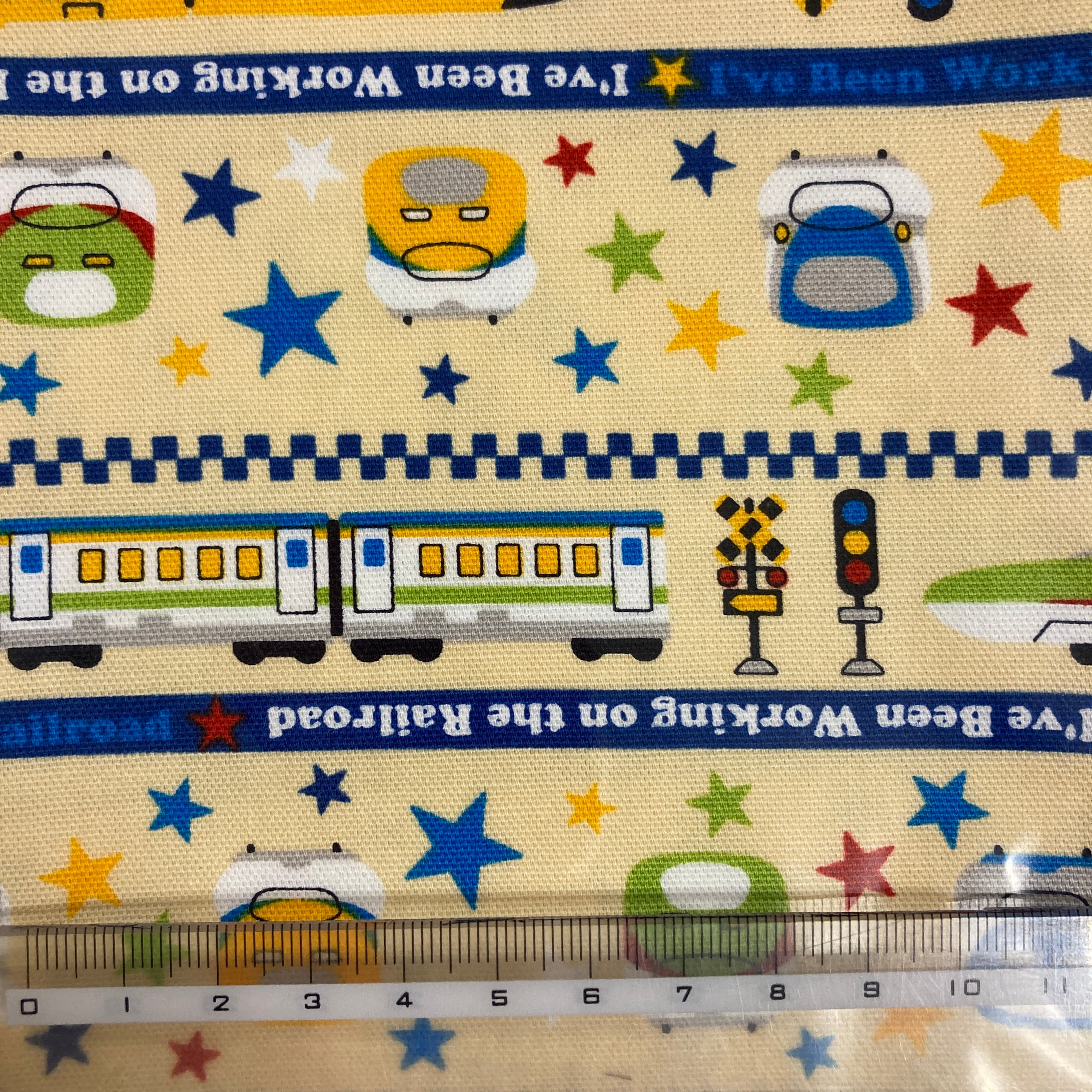 コップ/給食袋・ランチョンマット(小)セット 星と電車たち クリームベース