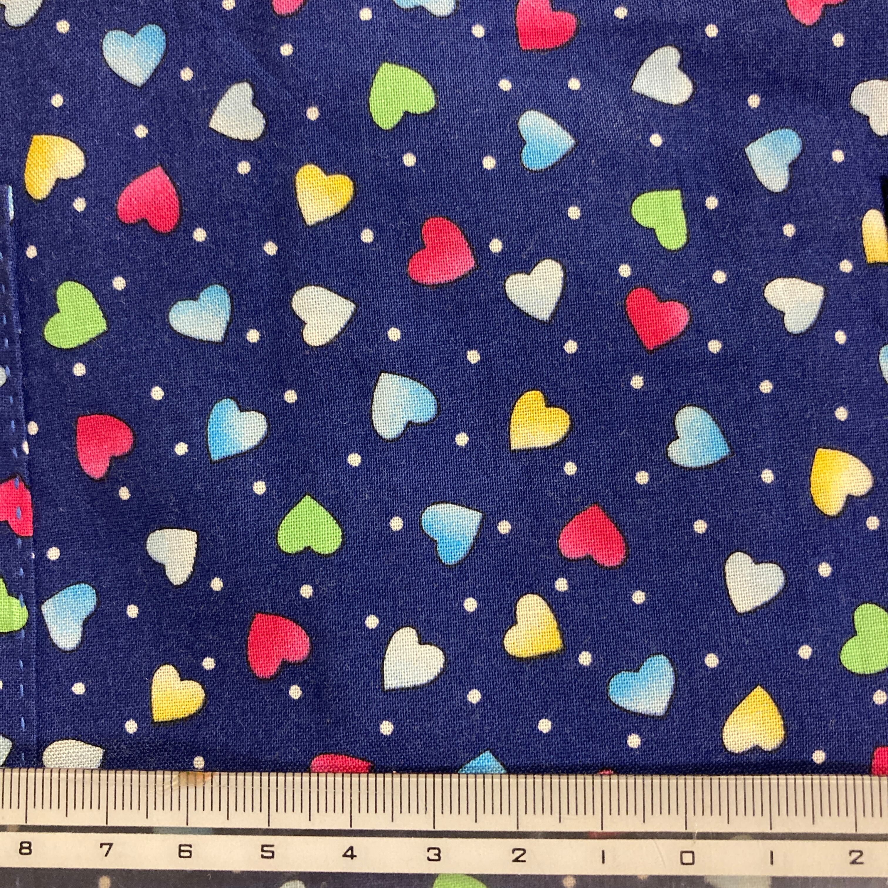 長袖スモック100(身丈40cm)小さなカラフルハート 紺