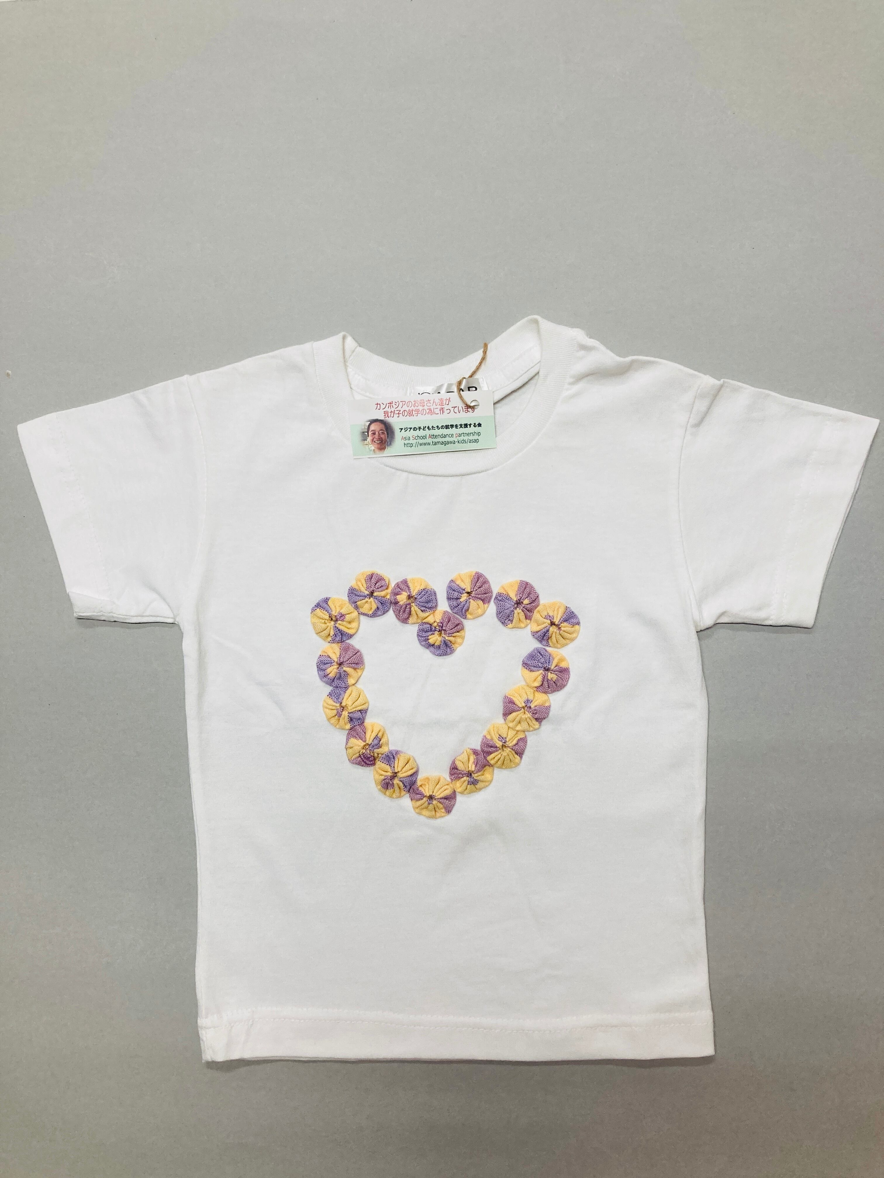 かわいいハート模様のカンボジアのお母さんの手作りTシャツです。