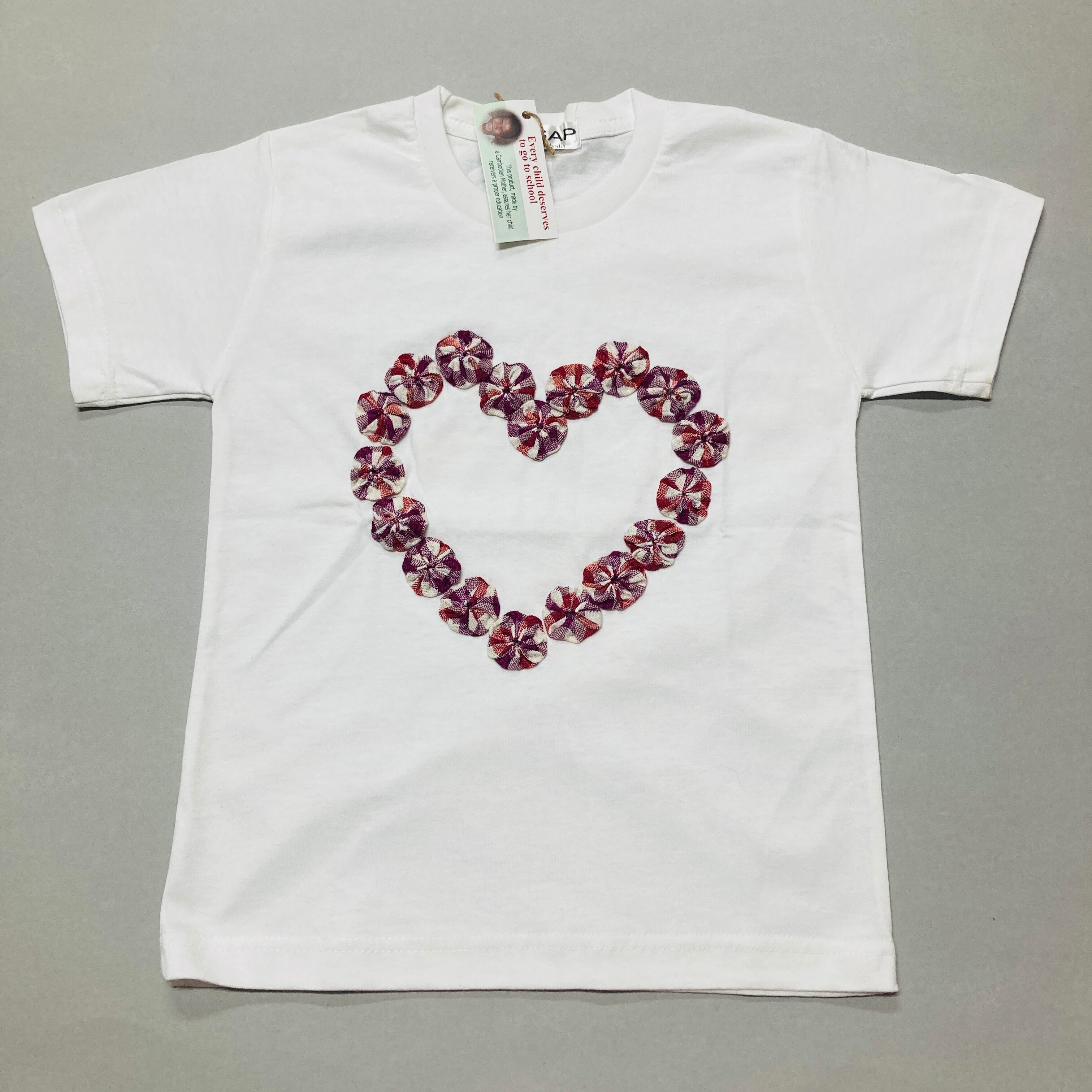 かわいいハート模様のカンボジアのお母さんの手作りTシャツです。